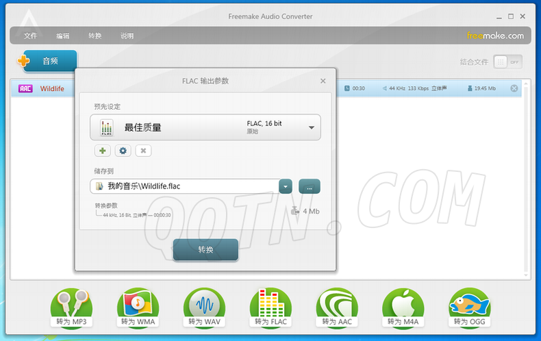 转换WMA到MP3,MP3到M4A,FLAC到MP3,AAC到MP3,MP3到WMA,WAV到MP3,M4A到MP3,OGG到MP3,APE为MP3。