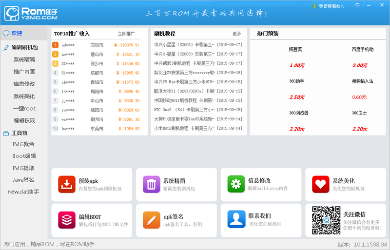Rom助手分发版最新版全面来袭,它是首款可以在Windows平台编辑Rom的工具,拥有预装apk、系统精简、信息修改、系统美化等功能。