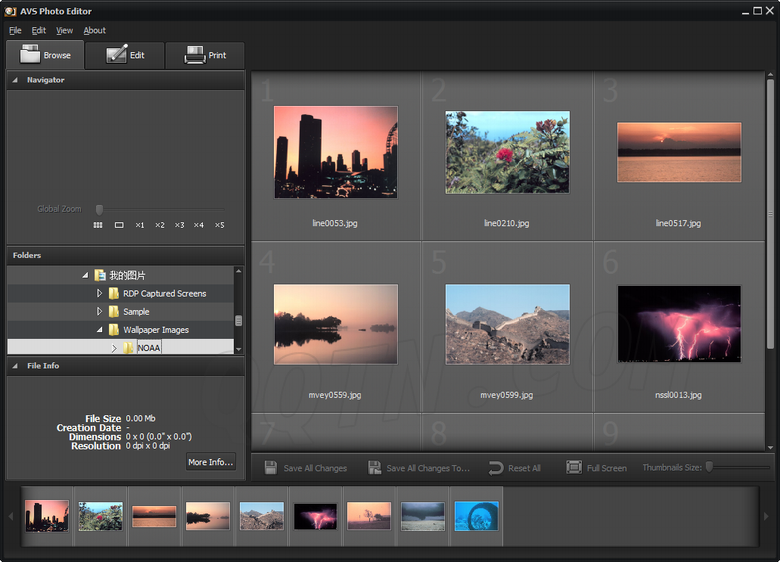 AVS照片编辑器界面是英文,法语,德语,西班牙语,意大利语,日语,波兰语和俄语。