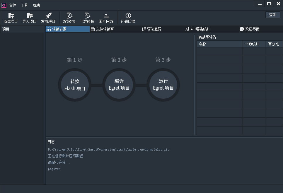 1) 源码转换。工具会根据已写好的语法转换规则和D:\ConversionOut\config目录下的API映射关系转换as3源码到D:\ConversionOut\EgretGame\src目录下。