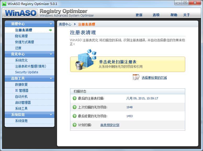 WinASO Registry Optimizer中文版软对系统运行速度的提升是相当惊人的,WinASO Registry Optimizer被很好的设计出来修复绝大多数跟注册表有关的问题。