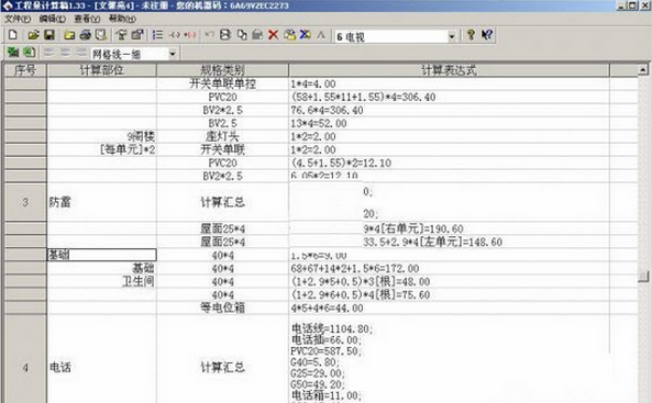 工程量计算工作对表格的要求并不高,主要是输入的表达式及时显示结果并且分类汇总,
