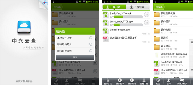 中兴云盘拥有安全云存储,断电续传、瞬间秒传、离线下载、即拍即传以及分享资源等功能,让数据随身携带,中兴用户专用哦!