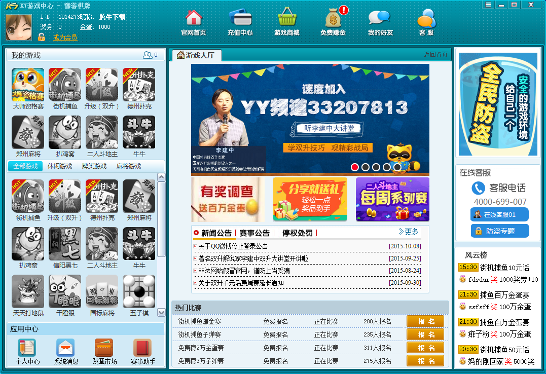 网易云音乐pc客户端v2.10.6.200601 最新版K7游戏中心是一款专业公平的棋牌竞技休闲类游戏平台,游戏包括双升、郑州麻将、街机捕鱼、斗地主等数十款经典棋牌以及地方特色棋牌游戏。游戏大厅主要分为休闲游戏、牌类游戏和麻将游戏三大类,覆盖市面上所有主流棋牌休闲游戏,免费加入,同时游戏中心为广大玩家准备了丰富的活动,让你在畅玩游戏的同时也能获得更多丰富的奖励。