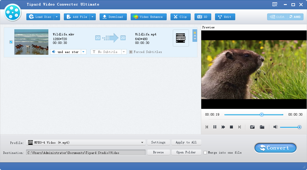 Tipard的视频转换终极允许您设置的1080p高清格式的配置文件和转换DVD /视频到各种3D格式。