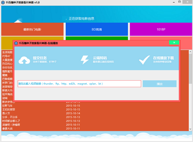 千百撸种子搜索看片神器是一款专为广大宅男打造的最新种子搜索神器,它不仅可以帮你搜索种子资源,还可以为你在线播放,软件界面简单,你可以选择画质,囊括了网络中的近万部最新电影资源,喜欢看视频这绝对是最佳选择,有需要的赶紧来下载使千百撸种子搜索看片神器吧。