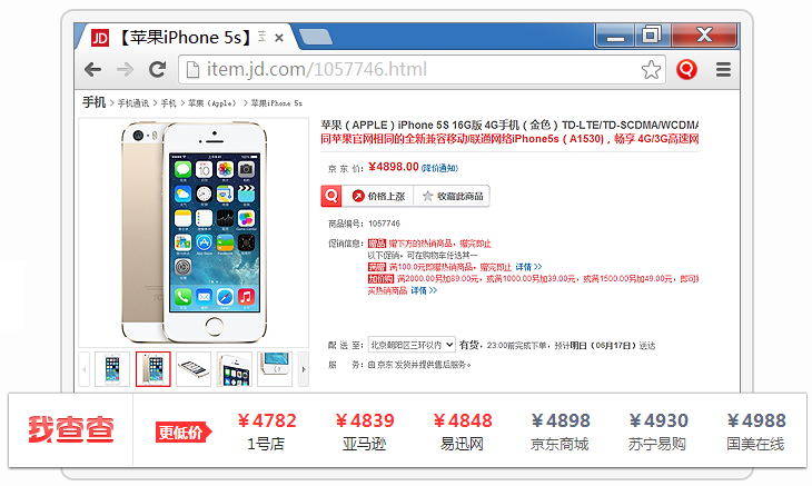 我查查购物助手是一款简单轻巧的浏览器扩展,可以让你的网购更加省钱,支持主流浏览器,主要提供了全网比价、价格历史以及条码查询等功能。