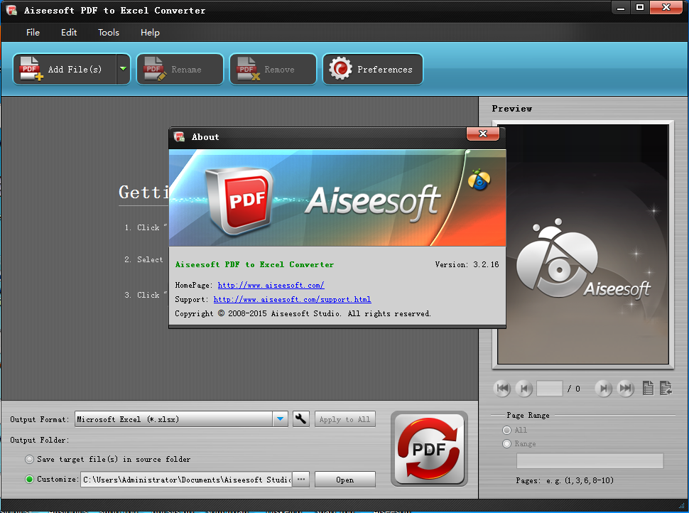 Aiseesoft PDF to Excel Converter PDF到Excel转换器,它是很容易迅速转换PDF文件为可编辑的Microsoft Excel文件可以保存在XLSX或XLS格式,并保留表格格式让你的数据是很容易的工作。