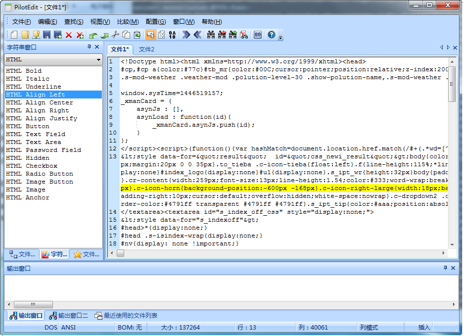 文本编辑器PilotEdit Lite 可开启4GB以上的超大档案(付费版400GB),完全支援UNICODE、DOS/UNIX档案,自订档案类型及关键字高亮度显示、支援HEX及Column模式、无限次的复原及重做、自动换行、FTP档案编辑、多行搜寻取代、档案比较及合并、自订字串表格、规则运算式、档案群组、多资料夹搜寻取代、以旧资料夹结构将选取的档案另存新档