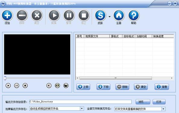 《闪电-AVI视频转换器》是一个功能强大的AVI、MPEG、RM/RMVB视频转换软件,我们采用先进的编码解码技术,实现了转换速度快及转换视频质量高的完美结合。它可以帮助您将几乎所有流行的视频格式,如:RM、RMVB、VOB、DAT、VCD、DVD、SVCD、ASF、MOV、QT、MPEG、MPG、WMV、 MP4、3GP、DivX、XviD、AVI、FLV、SWF等视频文件转换为电脑、MP4机、手机或DVD影碟机上所支持的AVI与MPEG及MP4视频格式。软件可以实现一次批量转换大量的视频音频文件,支持转换后自动关机功能,可以实现无人值守,为您节省大量的宝贵时间。您还可以用本软件实现视频的分割和视频截取,从整段视频中挑选您需要的部分。本软件还支持音频的转换,您可以实现MP3,WAV,CD,WMA,OGG,AAC,AC3,FLAC,APE等常用音频见的相互转换。可以实现手机视频音频格式(3GP,3GPP,3GP2,3G2,MP4)的转换,支持各种智能手机和黑莓手机。软件还支持各种视频文件的播放预览,支持更换软件皮肤,操作极为简单。