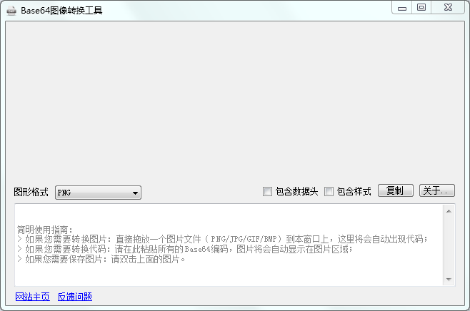 如果您需要转换图片:直接拖放一个图片文件(png/jpg/gif/bmp)到本窗口上,这里将会自动出现代码;