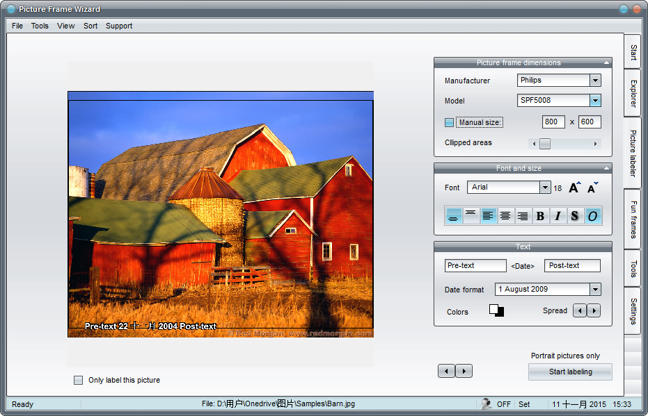 PictureFrame指令向导允许您打印日期和其他文本,以每张图片。
