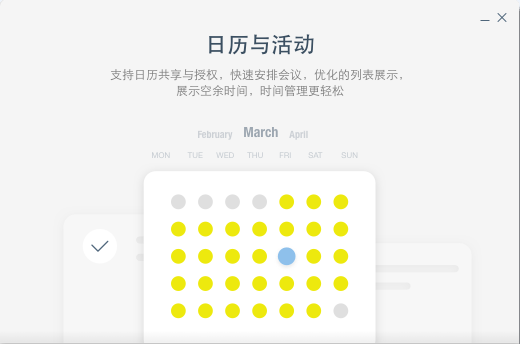 支持日历共享与授权,快速安排会议,优化的列表展示