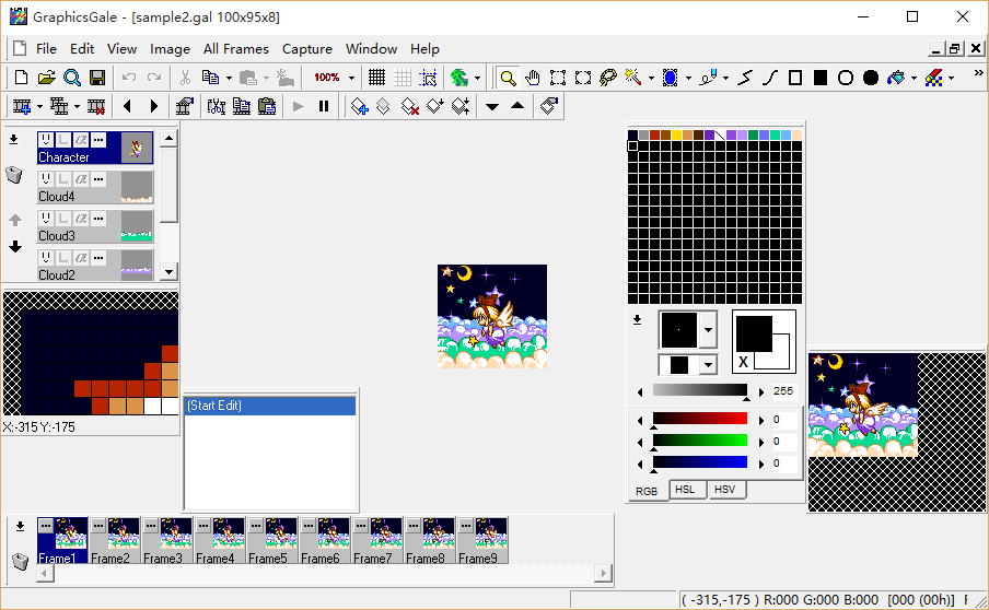 动画制作工具GraphicsGale 是好用的动画制作工具工具。GraphicsGale 是一个非常不错的动画制作工具工具!你可以用他对图片进行润饰,描绘!可以用来制作图标,动画!甚至AVI文件!是你制作动画的好帮手!支持BMP, ICO, CUR, ANI, JPEG, GIF, PNG, TGA, and AVI格式!