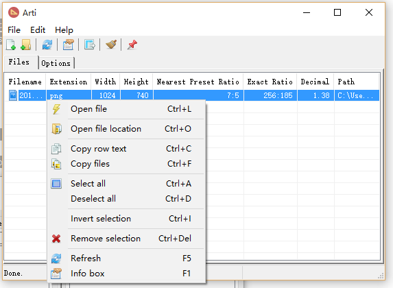 图像宽高比工具Arti (Aspect Ratio Tool for Images) 是一个小应用程序,它列出了纵横比为图像。确切的比率列在除了基于可配置的预设列表最接近的匹配比。