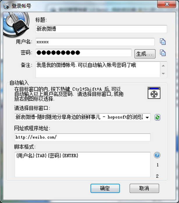 只需在目标窗口内按下热键,即可自动输入帐号密码,方便快捷。免去了输入密码的繁琐过程
