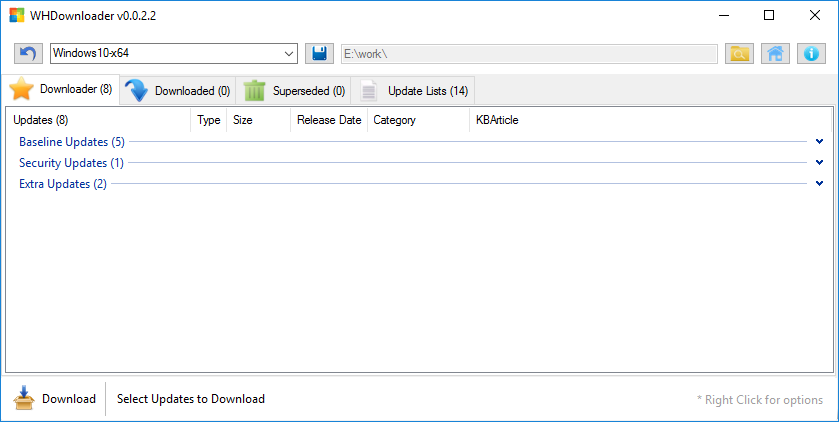 WHDownloader(Windows Hotfix Downloader) 是一个具备友好用户界面的Windows补丁程序下载器,软件也提供了Windows 10, Windows 8.1, Windows 7 Post-SP1, Office 2016, Office 2013 Post-SP1, Office 2010 Post-SP23的修复补丁下载。