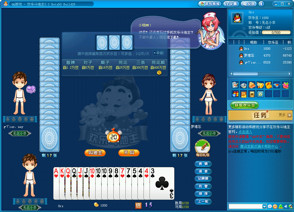 qq欢乐斗地主下载2017版,华丽的中国风,经典的斗地主玩法,打造最好玩的国民休闲手游。真人玩家时时在线,万人棋牌PK竞技,告别乏味的单机游戏。这里为广大玩家带来qq欢乐斗地主所有版本资源,qq欢乐斗地主最新版、qq欢乐斗地主历史版本、qq欢乐斗地主不洗牌破解版,你可以快速下载安装最新版欢乐斗地主,支持后台下载,欢迎有需要的朋友前来体验。