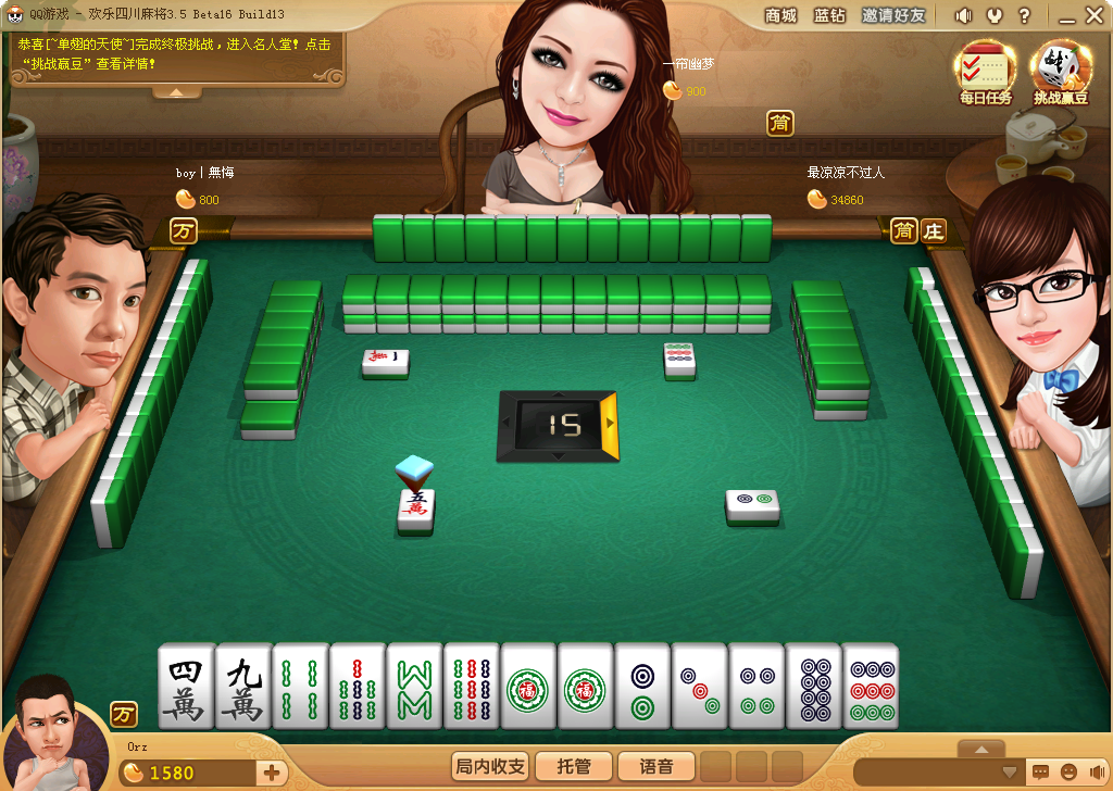 窍门就是 胡牌不要胡小的,比如另外3家都打的是万,你胡2 5 8万,外面一张 2 5 8万都没出来,这个时候你可以胡,而且胡的很多。又比如,手上都是对子的话,你不要碰,如果你运气好的话,来个对对胡,胡的也很大。普通麻将只能胡一次。这个可以胡很多次,直到牌摸光为止。还有就是不要跟豆子少的人玩,你会赢得很少。