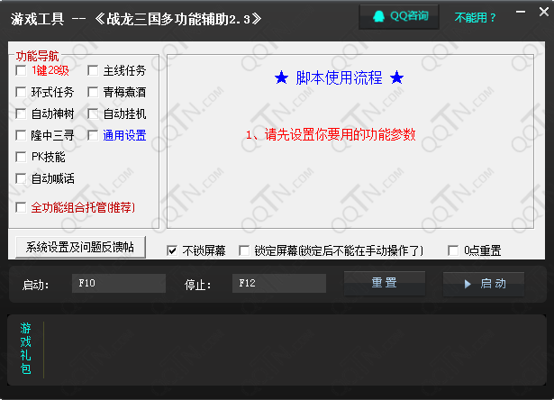 战龙三国多功能辅助拥有一键28级、自动主线日常任务、PK技能、自动挂机等功能。辅助支持设置全功能组合托管,游戏所有操作,辅助都能帮助你自动完成。快速升级,让你轻松游戏!