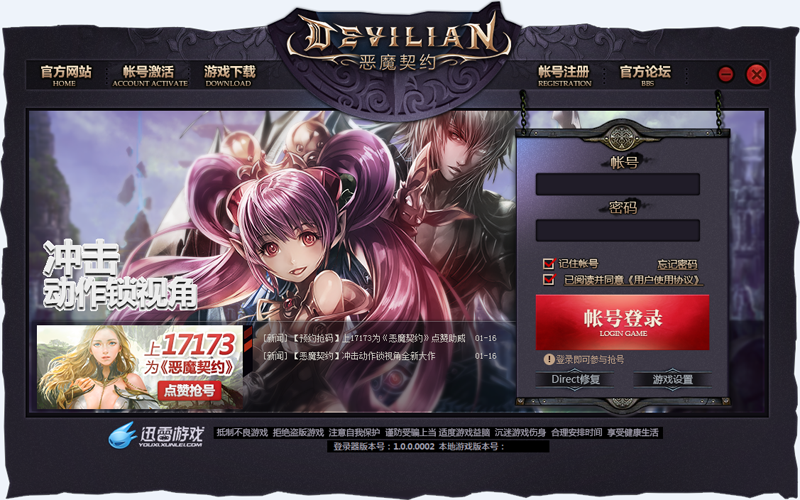 恶魔契约抢码器是游戏官方制作的激活码领取工具,另外玩家还可以使用本工具下载恶魔契约游戏客户端,并有Direct修复功能。