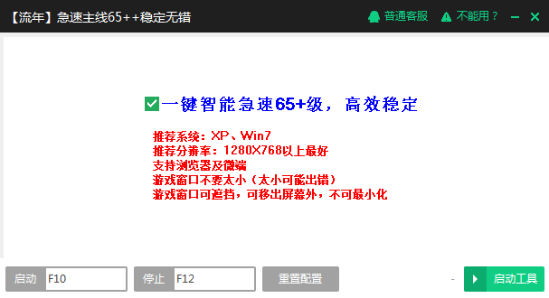 功能:【兼容win7/xp】【一键主线/任意等级,稳定快速】【每日签到】【微端领奖】【降妖除魔】【挖宝日常】【材料副本】【个人BOSS】【挂机升级】【自动喊话】【更多功能增加中】