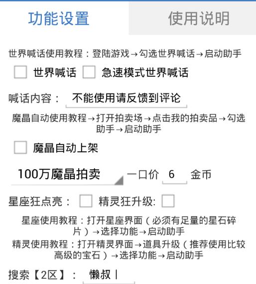 1、世界喊话使用教程:登陆游戏--勾选世界喊话--启动助手