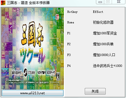 快捷键F1     增加1000军资金(需要先初始化修改器,然后再对应的回合点击商人-武器购入,之后开启本项即可修改成功,注意数值不能超过65535)