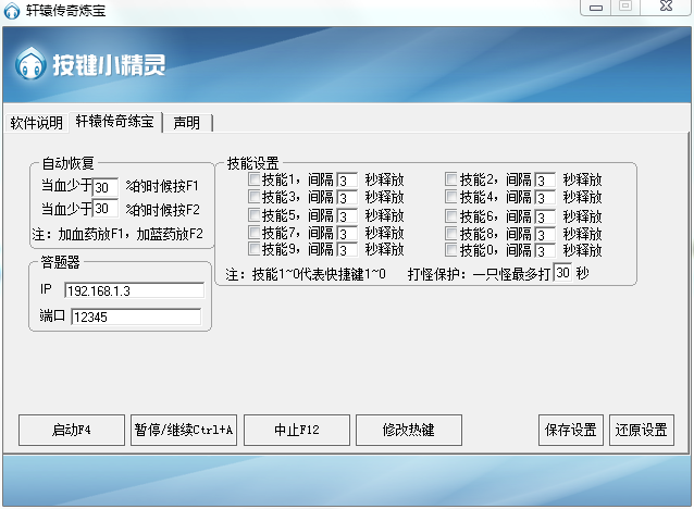 这款轩辕传奇练宝脚本,专门为轩辕传奇的炼宝任务制作,在执行该任务的同时,能够自动恢复、可以自动释放技能,还具有答题器的功能。