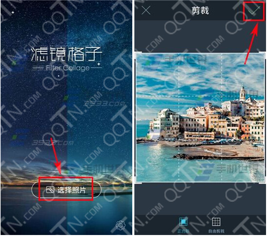 1)打开滤镜格子,进入星空最新网上盘口后点击【选择照片】按钮,从相册中选取一张照片,裁剪成自己满意的尺寸后点击【√】按钮。(如下图)