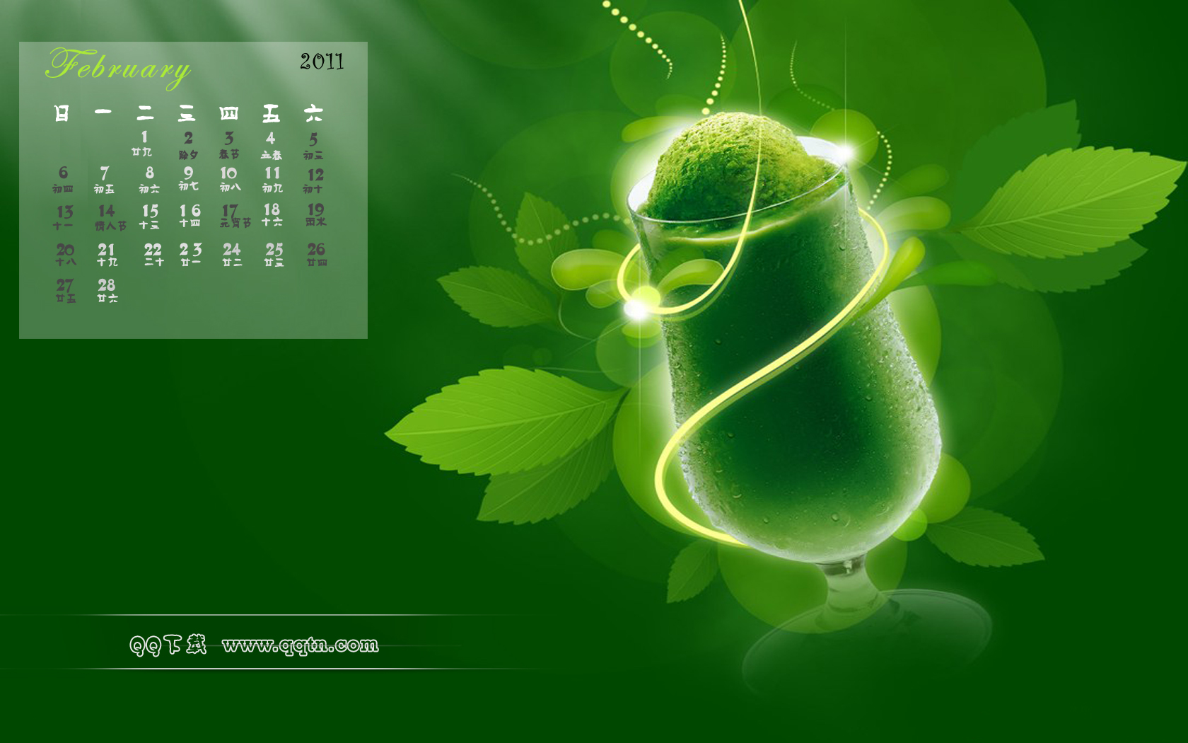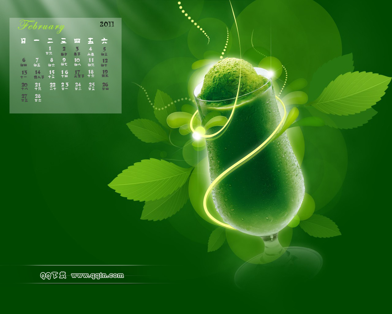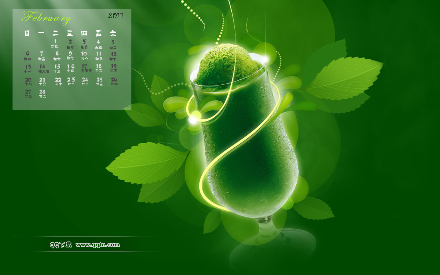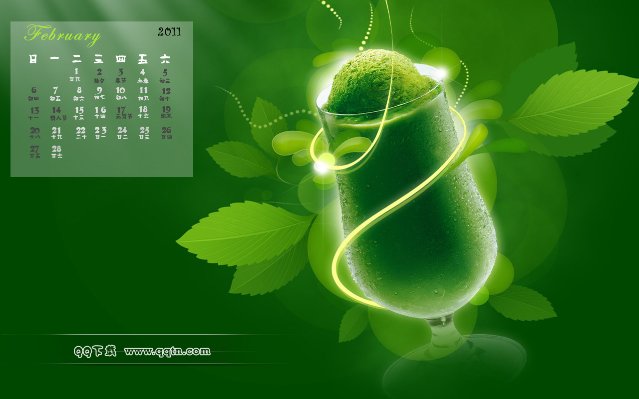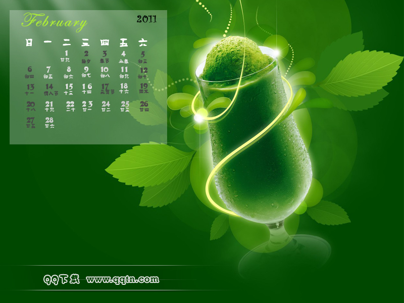 2011年2月日历壁纸,提供8种分辨率的桌面壁纸图片,800X600,1024X768,1280X 800, 1366X768,1280X1024, 1440X900,1680X1050,1600X1200, 请选择你所需要的分辨率下载吧。