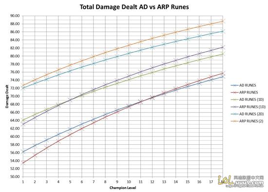 ①多兰情况下.护甲穿透符文在LV5之后开始优于攻击符文