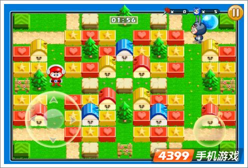 游戏玩法也没有多大区别,小时候玩过泡泡堂的小伙伴小编相信不要两分钟你就能找回感觉,轻松上手。游戏目的就是用炸弹清除周边箱子、木块等障碍物,打通到达敌人所在区域的道路,想方设法用泡泡炸死敌人,不过同时也要小心自己被炸到,那就得不偿失了。