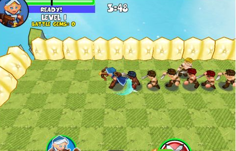 游戏操作起来不是很灵敏,这给游戏增加了不少的难度。英雄在不断的召集士兵的过程中,如果不小心碰到周围的围栏,就会有士兵脱离队伍,需要重新召集。而且如果跑动的时候碰到石头等障碍还会去血,血量损耗光就要重头开始了。