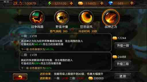 升级技能直接增加伤害百分比,这里需要注意的是技能进阶,提升幅度较大。