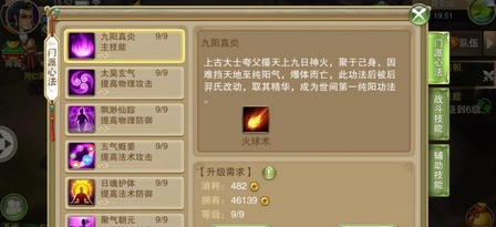谈完了辅助技能还是有必要了解一下门派技能的,游戏的门派技能也和一般的游戏设定有些区别。门派技能在游戏初期就可习得,并且可以进行非常方便的一键升级,而这些技能的作用并不是为你增加几个攻击招式或者BUFF效果,而是加强你的属性,而本作的人物属性是自动分配的,所以这个有些重复的功能也只能理解为游戏为玩家提供了一次额外的加点机会。