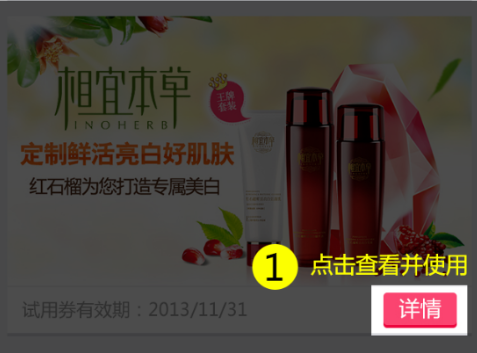 3、点击详情进入试用券详情,点击“立即使用”,漂漂美妆助手会运行二维码扫描,请对扫描放置在店铺中的漂漂二维码,即可获取领取码;