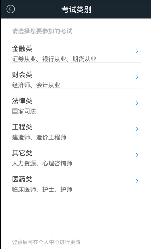 2、选择要参加的考试类别