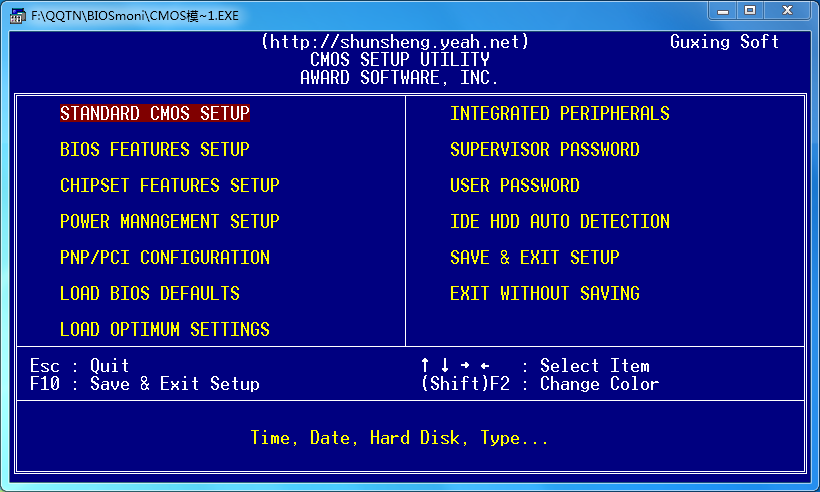 1、这个BIOS练习器模拟的是AWARD BIOS,如果您的计算机是AMI BIOS,那么这个工具也可以作为参考,因为这两种BIOS品牌只是在界面上有所不同,其设置选项表达的意思都是一样的。