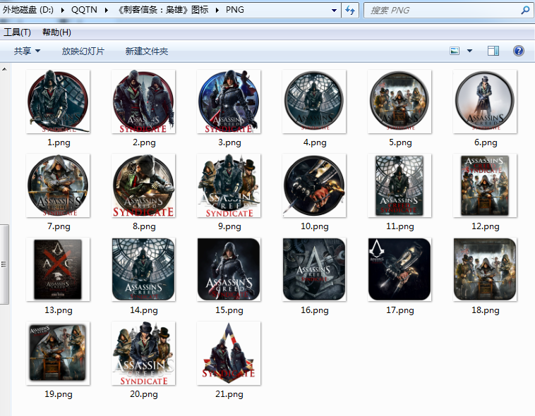 刺客信条枭雄精美游戏图标一共21个,腾牛小编在这里打包给大家下载,此图标转载自3DM论坛,喜欢玩刺客信条枭雄的小伙伴们不要错过这些精美游戏图标了!