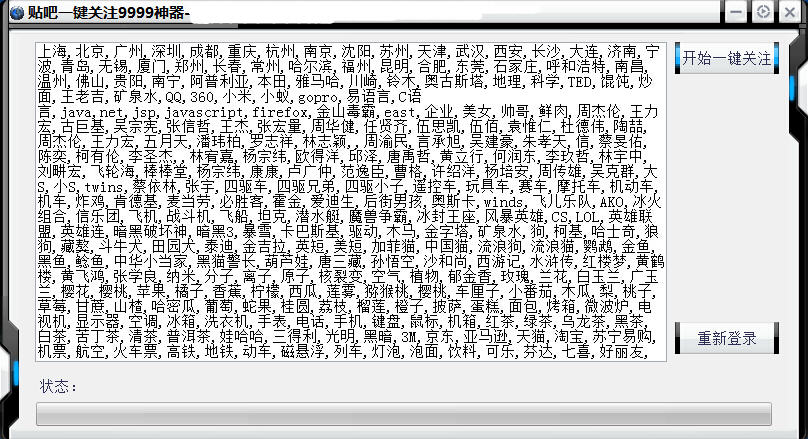 3,登录成功后,开始一键关注,里面的贴吧名字