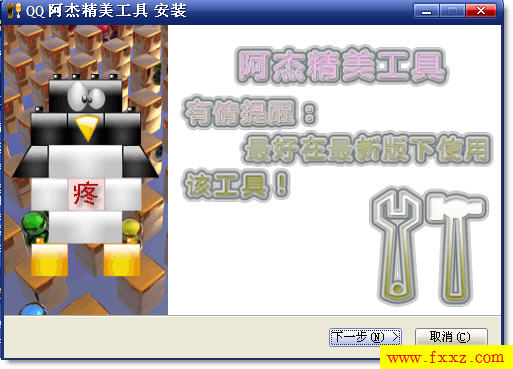 如今的QQ的体积太大不说,速度也极其的慢。实际上QQ的很多功能我们平时很少用到,运行时占用的系统资源。这时你可以用《阿杰精美工具》将我们的QQ进行精简与美化,让它拥有苗条的身段和敏捷的身手以及个性化的登录界面等,阿杰精美工具支持任何QQ版本,使用很方便,关闭QQ程序,运行阿杰精美工具,在安装向导中即可选择精简的内容以及美化的项目。选择好后,把它安装到QQ安装目录下即可,使用它不但能精简QQ、还能美化登陆界面、托盘、等级、过渡、字符和自定义性别等。朋友们就用阿杰精美工具来打造具有自己特色的QQ吧!