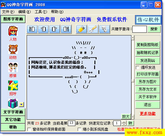 当前位置:星空最新网上盘口联络聊天QQ相关 → QQ神奇字符画 2008 V1.0.0.49 Beta 4c