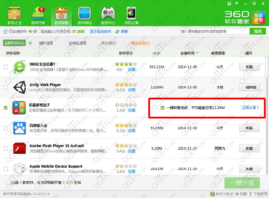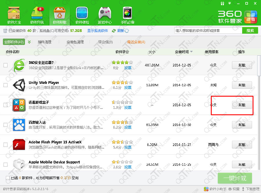 进入软件管家---软件卸载,找到迅雷游戏盒子,点击卸载