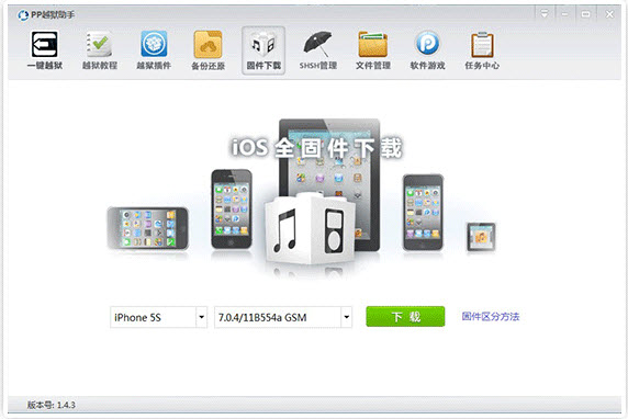 对于每次固件升级,用户都会利用不同的方式方法来下载升级,有PP越狱助手不用寻找即可精准下载固件。