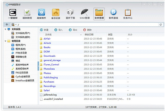 您可以通过PP越狱助手将您所需备份的资料,如图片、应用程序、电话短信等设备资料一键备份到您电脑上。一般来说备份地址是在程序同一目录的"backup"文夹里。