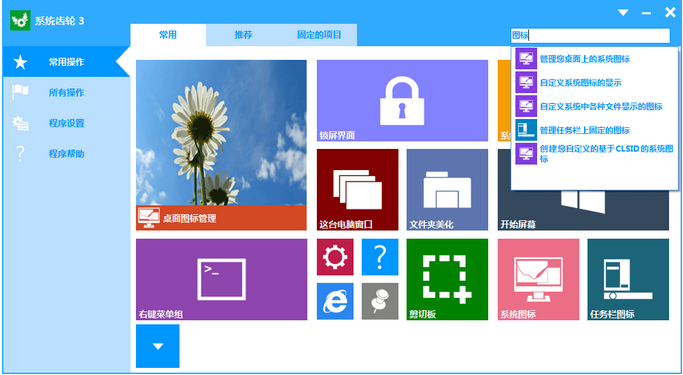 系统齿轮可以使您的电脑变得绚丽多彩、与众不同,极富个人魅力;它拥有许多其它美化软件所没有的优势!功能强大,操作简单,使用方便,同时还具有详细的功能描述,不管您的电脑知识有多少,他都能让您轻松使用;更多精彩内容欢迎下载体验。