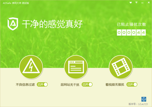 ADSafe广告管家改名“ADSafe净网大师”啦,使用ADSafe净网大师无论是网页广告还是视频广告的屏蔽效果都非常不错,而且还是国内首款免费的个人专业广告屏蔽工具,ADSafe广告管家性能稳定,界面也十分干净漂亮。
