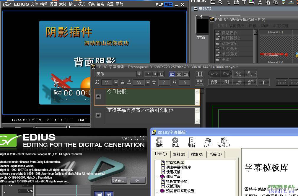 “EDIUS 字幕模板库”,可以用模板修改制作标题字幕、动态字幕、和拍唱词。使用说明请看帮助