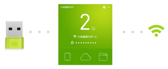 插上一台已上网的电脑,小米随身WiFi就能创建免费WiFi网络,让你的手机和平板立刻连上WiFi,再也不用担心你的流量!